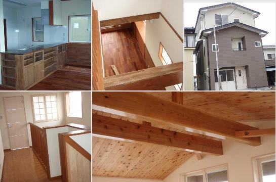 構造材には、国産材○○を採用。梁は○○mm採用。強くて安心・安全な住まいが実現。