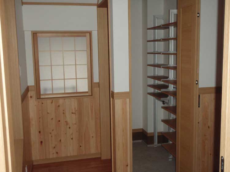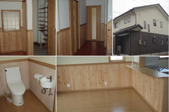 リビングはスギ材を使用し家事をしながら家族とコミュニケーションが取れるオープンスペース