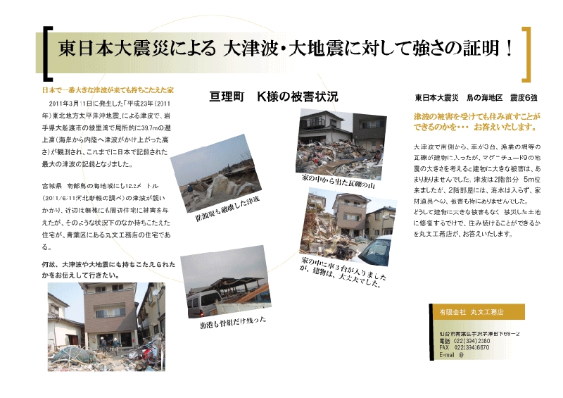■今回、東日本大震災の津波に絶えた家、なぜ倒壊しなかったのか強い家の証明ツールは資料を参考下さい。